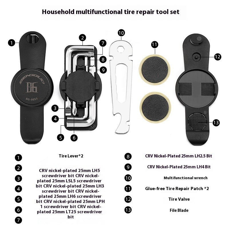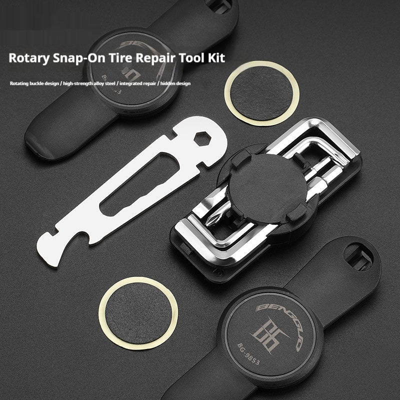 Herramienta de reparación de bicicletas con hebilla giratoria y llave combinada para reparación de neumáticos. - Negro / Regular
